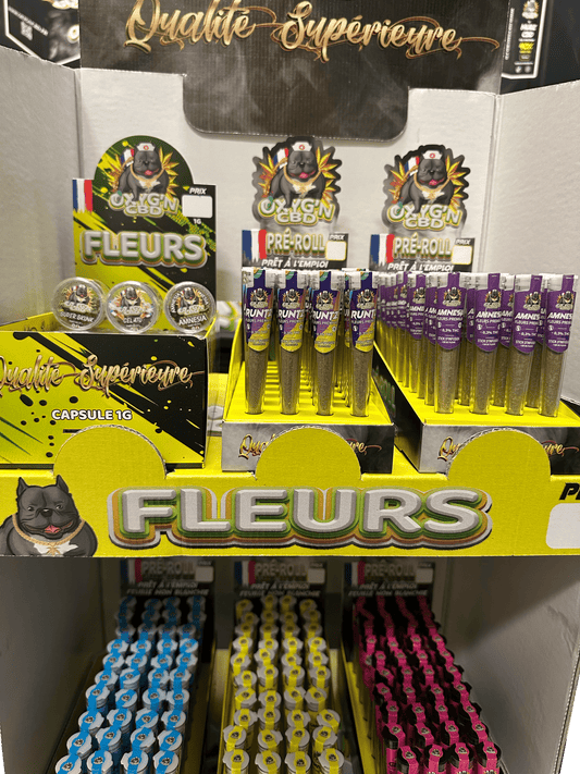 ✅ Produits prêts à vendre (capsules, pré-rolls, présentoirs)